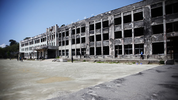 会場視察を終え、外を歩くと津波の爪痕がまだはっきりと残っています。今にも崩れそうな壊れかけの家屋や営業のできなくなった店舗が当時を物語ります。あの日あの場所にいなかった自分たちに少しでも何かを伝えようとするかのような光景に、こちらもそれを受け止めようとしっかりと目を凝らして向かい合いました。