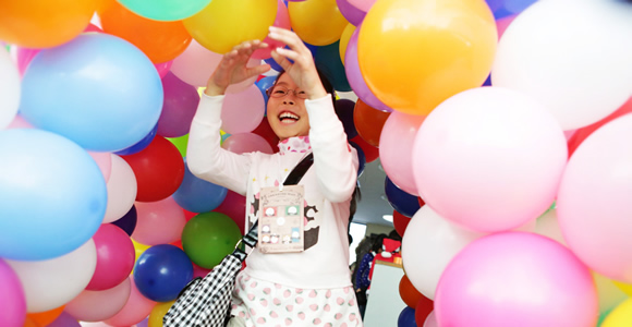 子ども達は受付で名札を作り、スタンプカードをもらったら、風船ゲートをくぐって会場に入ります。