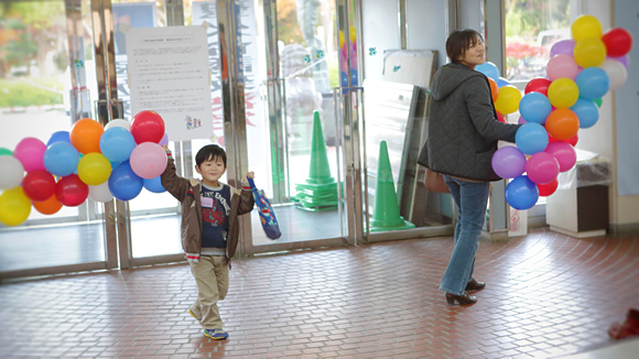最後に恒例の鬼ごっこをしてから、写真撮影。そして出口でお見送りです。帰りに子どもたちに風船をプレゼントします。